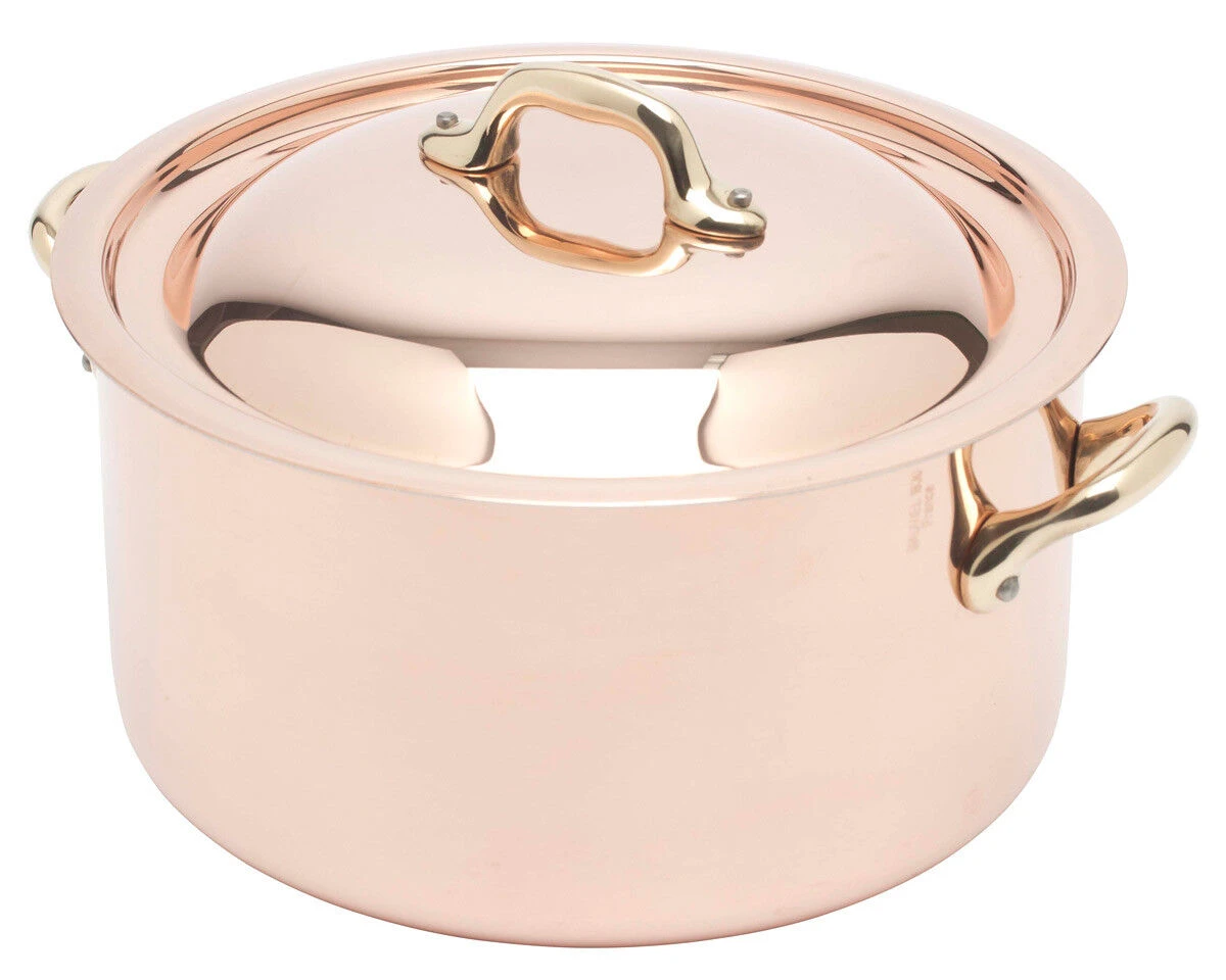De Mauviel M’150S pannen zijn gemaakt van 1,5 mm dik massief koper. De pannen en deksels zijn aan de binnenzijde bekleed met een 0,1 mm laag roestvrij staal. Deze laag is slijtvast en bestand tegen hoge temperaturen, in tegenstelling tot de vroegere vertinde pannen, en voorkomt dat het koper de smaak van uw bereidingen nadelig beïnvloedt.