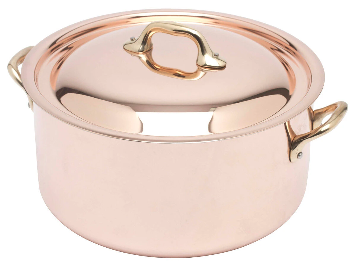 De Mauviel M’150S pannen zijn gemaakt van 1,5 mm dik massief koper. De pannen en deksels zijn aan de binnenzijde bekleed met een 0,1 mm laag roestvrij staal. Deze laag is slijtvast en bestand tegen hoge temperaturen, in tegenstelling tot de vroegere vertinde pannen, en voorkomt dat het koper de smaak van uw bereidingen nadelig beïnvloedt.