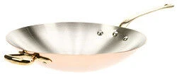 De Mauviel M’150b M’héritage wokpan heeft een diameter van 30 cm. De pan heeft een roestvrijstalen binnenzijde en is aan de buitenzijde bekleed met 1,5 mm dik gepolijst koper. Gebruik de wokpan voor het bereiden en serveren roerbakgerechten.