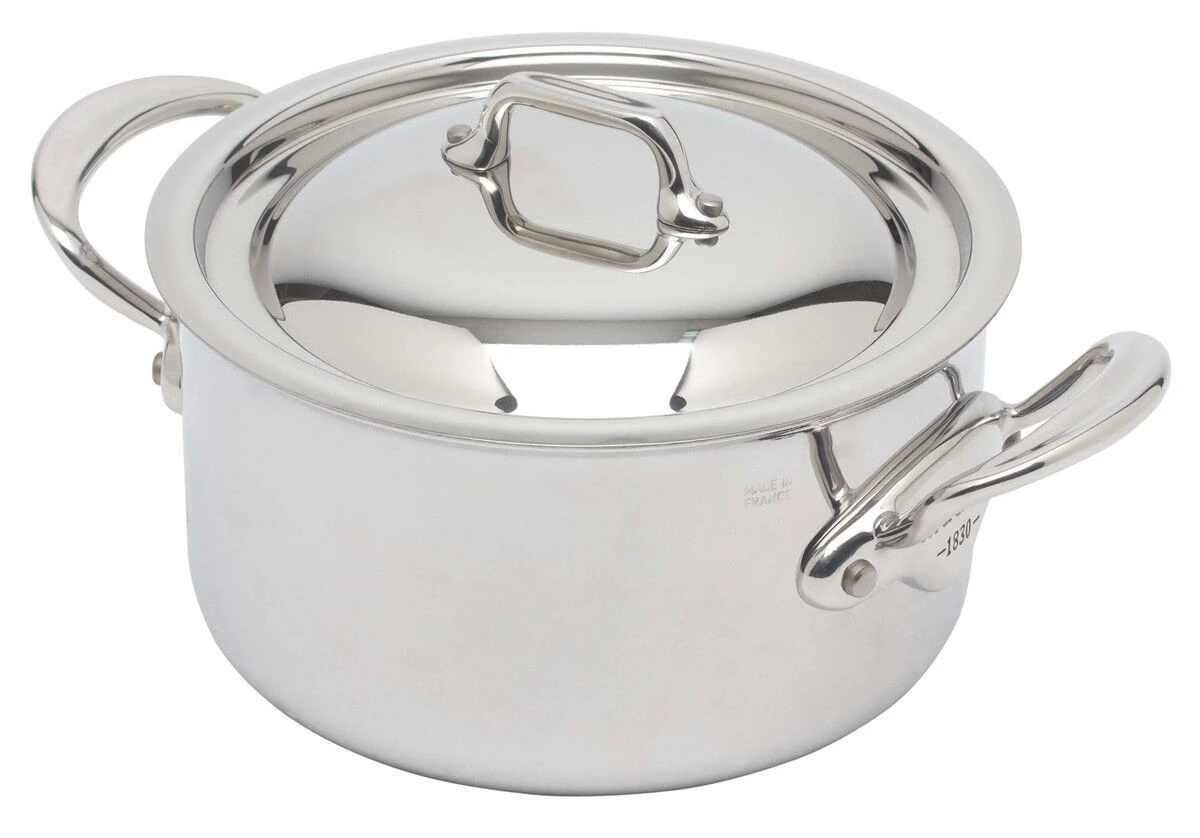 De Mauviel M’Cook pannen zijn vervaardigd uit een vijflaagse sandwich van roestvrij staal en aluminium. De aluminium kern die uit drie lagen aluminium bestaat zorgt voor een zeer snelle en gelijkmatige warmtegeleiding door de hele pan, van de bodem tot aan de rand. De lagen roestvrij staal die het aluminium volledig inkapselen voorkomen dat voedsel in contact kan komen met het aluminium. Ook de rand van de pannen zijn verzegeld met roestvrij staal, zodat de Mauviel M’Cook pannen zonder beperking vaatwasmachinebestendig zijn.