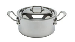 De Mauviel M’cook kookpan heeft een diameter van 20 cm en een inhoud van 3,4 liter. De pan met deksel en handgrepen bestaat uit de combinatie roestvrij staal en aluminium. Dit zorgt voor een goede warmtegeleiding. Gebruik de pan voor het koken van uw etenswaren.