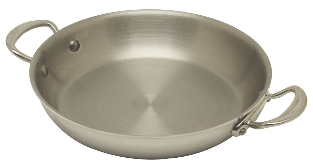 De pan heeft een afgeronde rand, die uitschenken van saus en/of ingrediënten vergemakkelijkt. De vastgeklonken handgrepen zijn van roestvrij staal. Bij juist gebruik blijven deze koel.