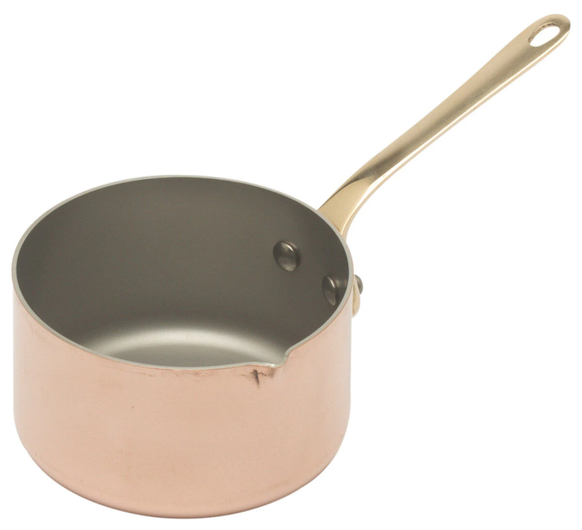 De Mauviel M’Minis steelpan met schenktuit is gemaakt van glanzend roestvrij koper met een bronzen greep en heeft een roestvrijstalen binnenzijde. De minipan heeft een diameter van 7 cm en is 5 cm hoog, de inhoud bedraagt 150 ml. Het pannetje is geschikt voor gebruik op een directe hittebron en kan in de oven. Gebruik de Mauviel M’Minis steelpan voor het serveren van individuele sauzen.