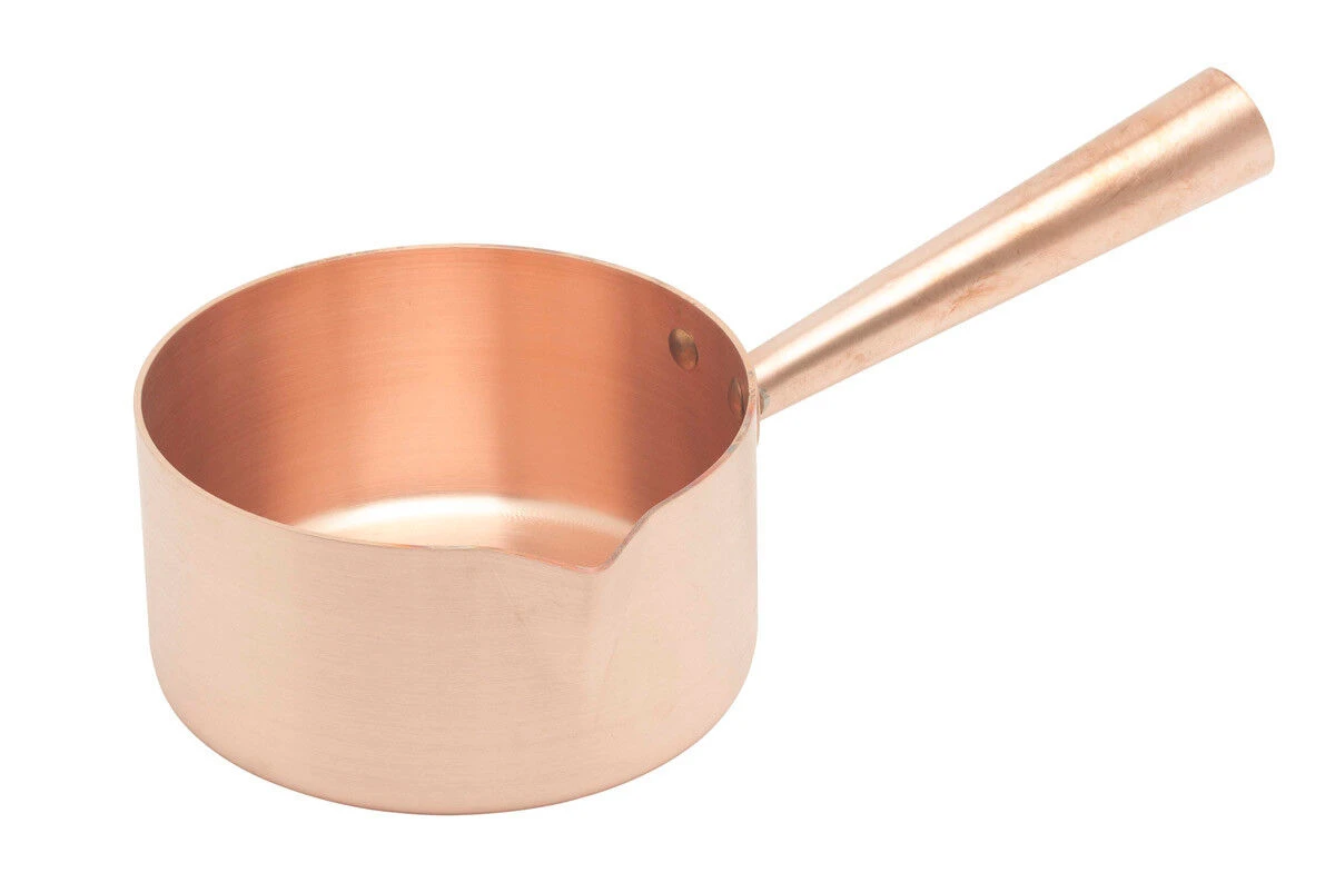 De koperen Mauviel M’passion suikerpan heeft een schenktuit, hierdoor schenkt u gemakkelijk suikersiroop en karamel uit.