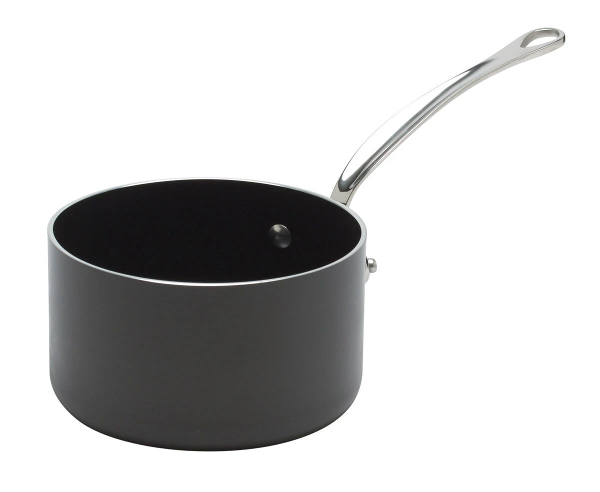 De Mauviel M’stone3 steelpan heeft een diameter van 16 cm en een inhoud van 1,8 liter. De pan is vervaardigd uit 3 à 4 mm dik aluminium met een anti-aanbaklaag. Gebruik de steelpan voor het bereiden en serveren van sauzen en jus.